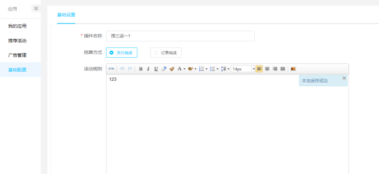 第八期|七件事技术中心更新优化项目一览发表时间:2022-01-13 18:28 新增功能插件【推三返一】 功能简述: 用户参加活动指定(每)推荐X人购买指定商品可得到对应的优惠券/积分/余额/虚拟币奖励。 插件入口位置