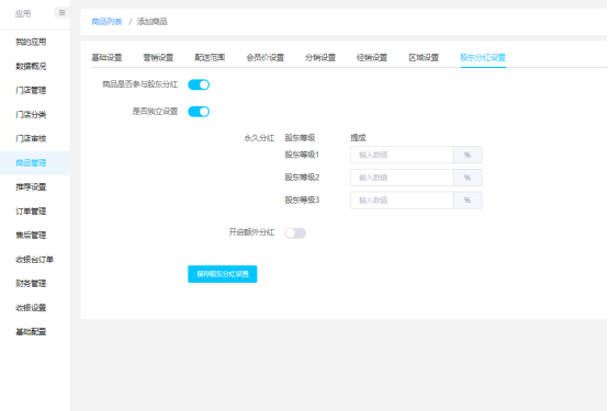 优化逻辑【门店分红】 新增门店自提订单走区域分红,所属区域是门店所属的区域 原逻辑:门店自提订单不会产生区域分红 优化功能【股东分红】 增加可选门店订单机制 原逻辑:门店订单不会算入股东管理的分红 后台开关