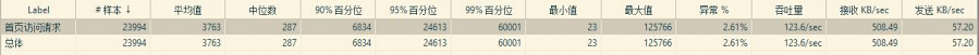 三 4 core 8G configuration test report 4核8G 配置测试报告 1.商城首页访问量 ●说明:商城首页布局装修,分类全部完成实际运营情况下进行测试。 ●**状态为:22000 左右 ●测试结果分析: 8000 请求时 95%访问时间在 61 毫秒内,16000 请求时 95%访问时间在 283 毫秒内,24000 请求时 95%访问时间在 3 秒内。 ●8000 请求/100S