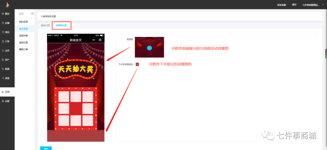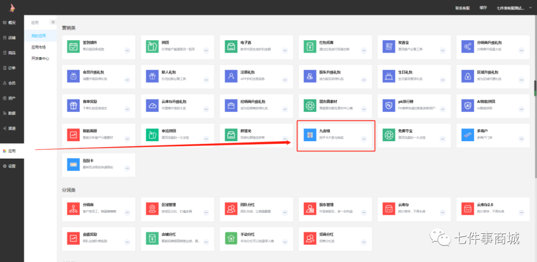 三、后台设置页面展示 1.入口:应用—九宫格